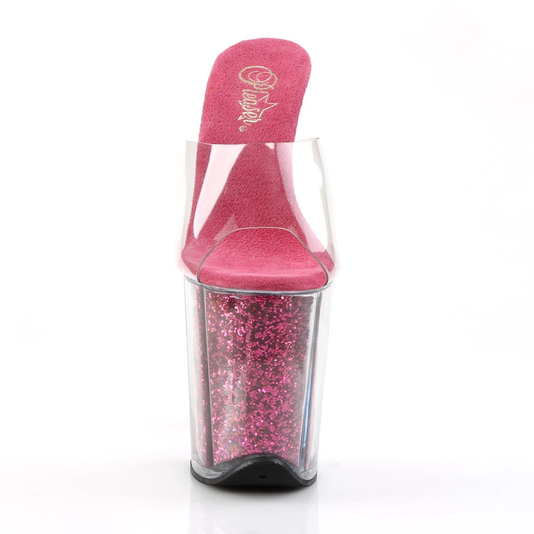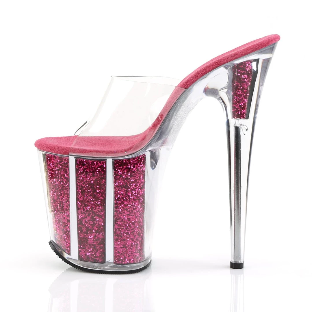 Gorgeous 8″(20cm) heel, 4″(10cm) platform slide featuring glitter filled bottom. These high heels lift the standards of elegance for an unforgettable look.