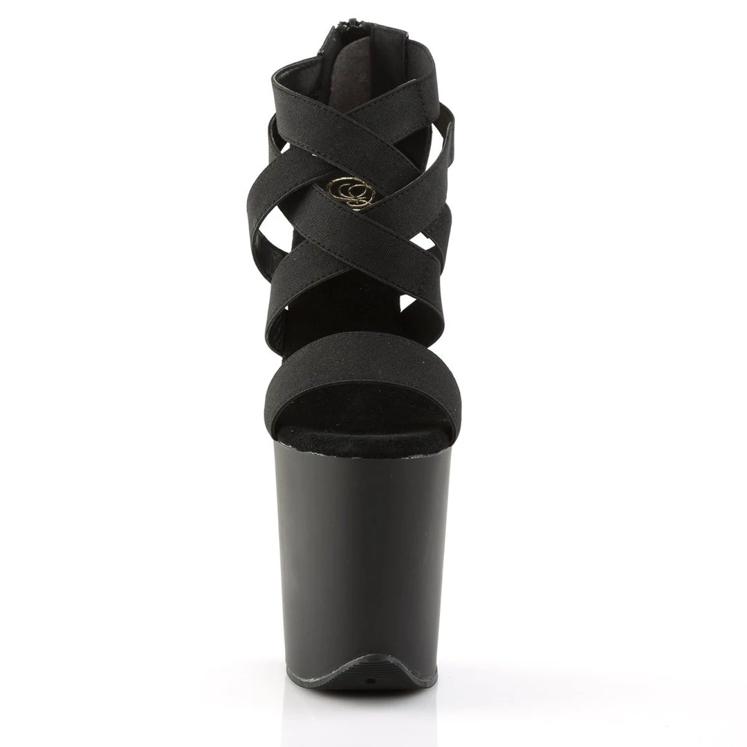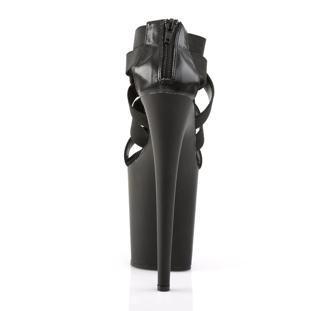 Platform Criss Cross Closed Back Sandal, Back Zip Closure. The soft cushioning contributes, alongside the 4 inch front platform, to creating a comfortable feel for the feet, while the 8 inch high heels add that provocative touch for a sexy look without any sacrifice.