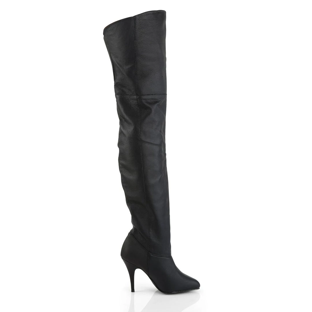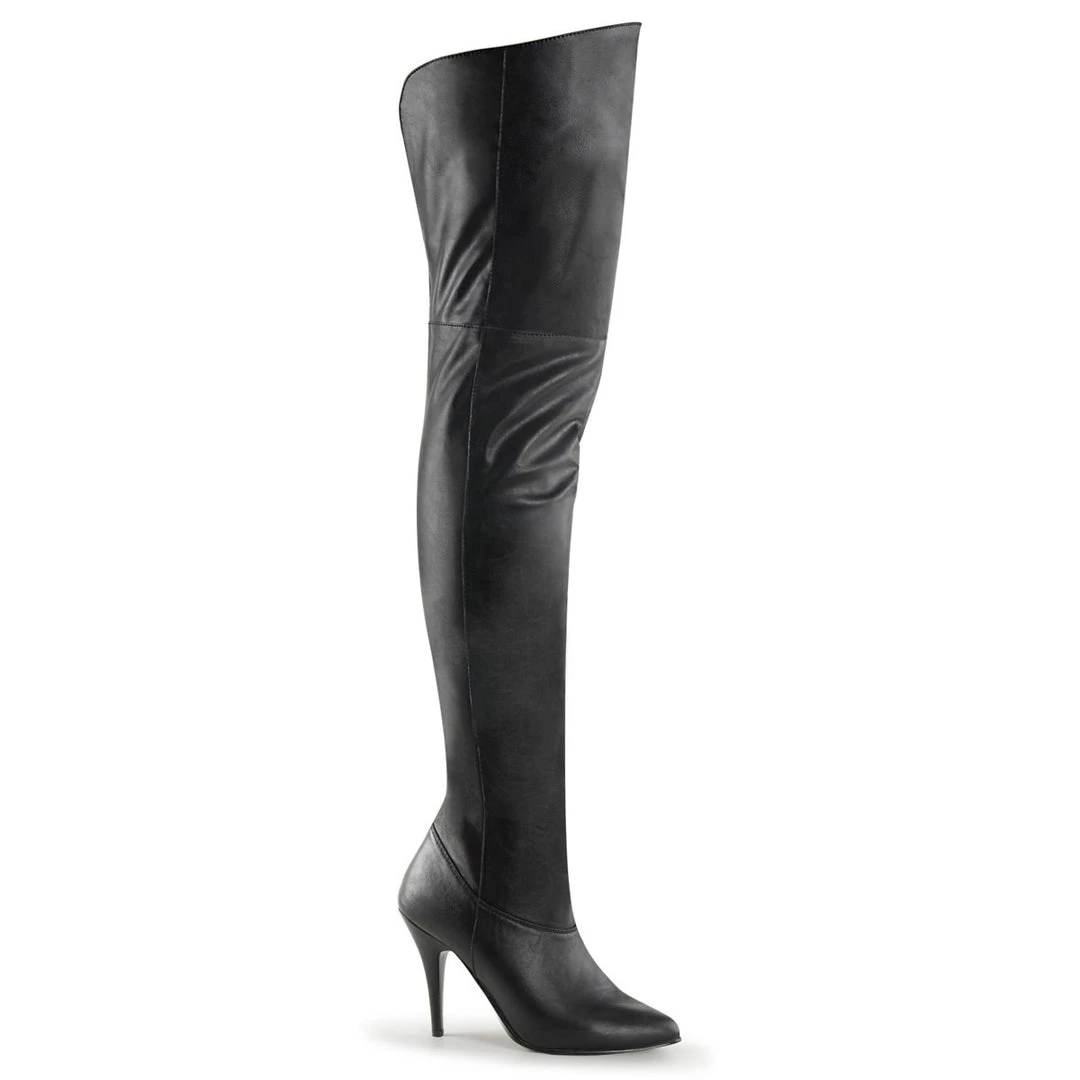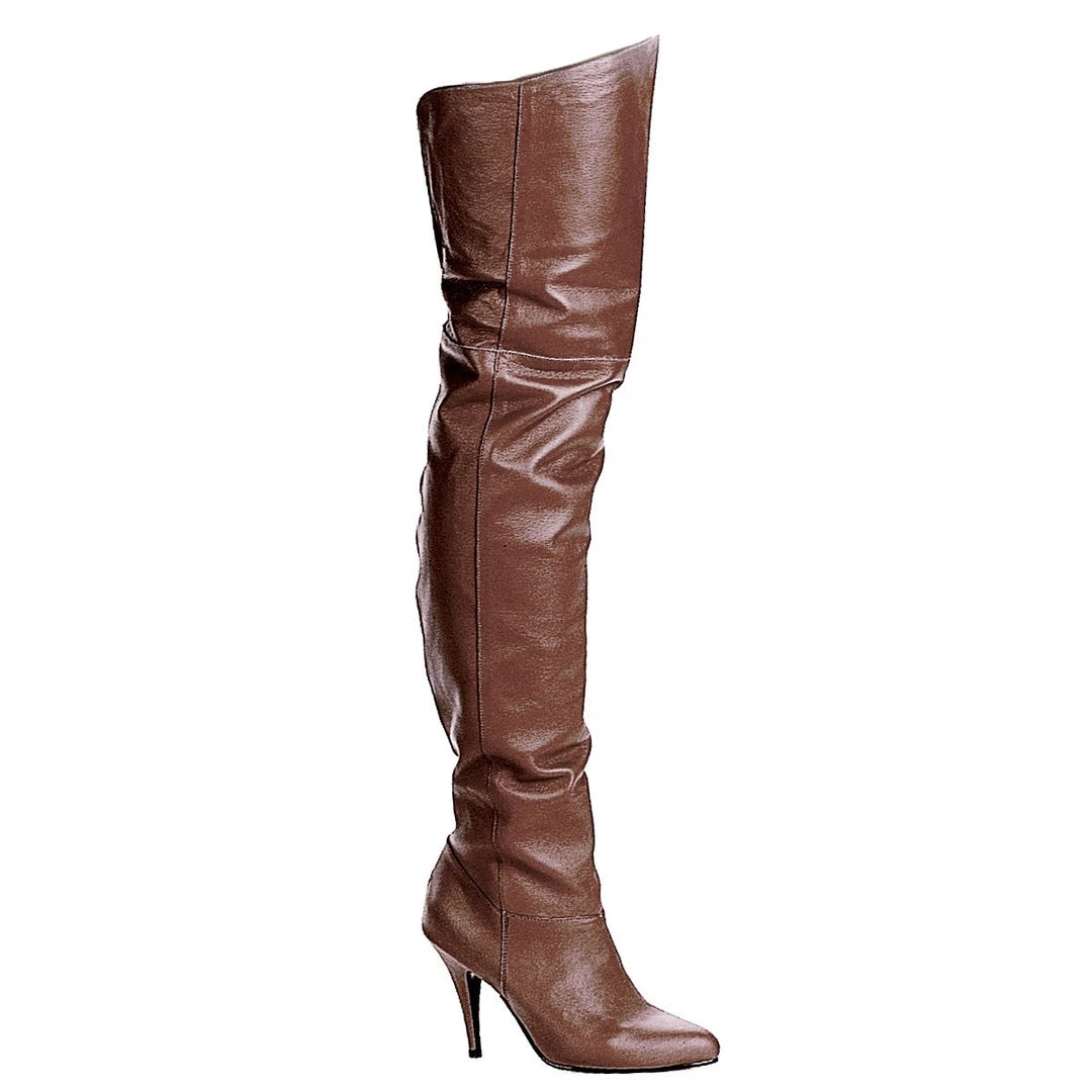 This over the knee boot features an elasticized gusset for easy on and off, pointed toe, and 4 inch stiletto heel. A form-fitting shape with a pointed toe and stiletto heel that’ll keep his eyes glued to you. Your sex appeal will become Legendary.