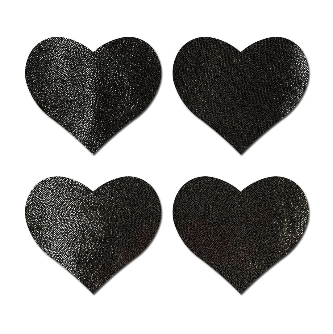 Petites: Two-Pair Small Liquid Black Hearts Nipple Pasties by Pastease® are hand-made in the USA of soft form-fitting material that forms seamlessly to curves and resists wrinkling over hardening nipples.