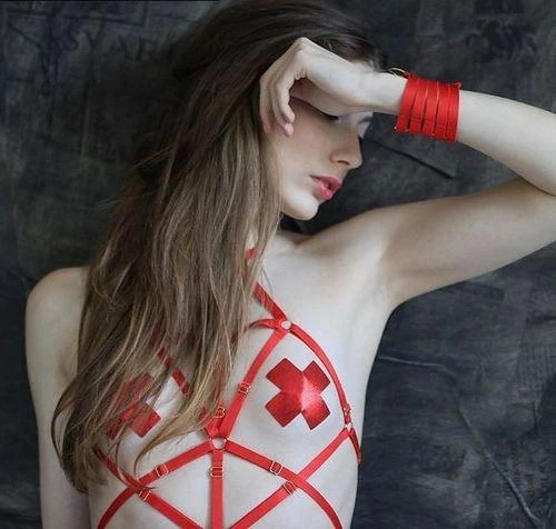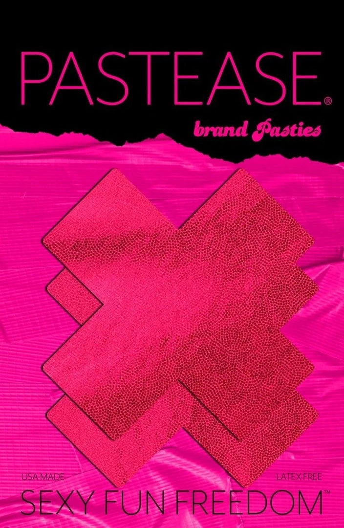 Liquid Red Cross Nipple Pasties by Pastease® are hand-made in the USA of durable, shiny pleather material that forms to curves and resists wrinkling over hardening nipples.