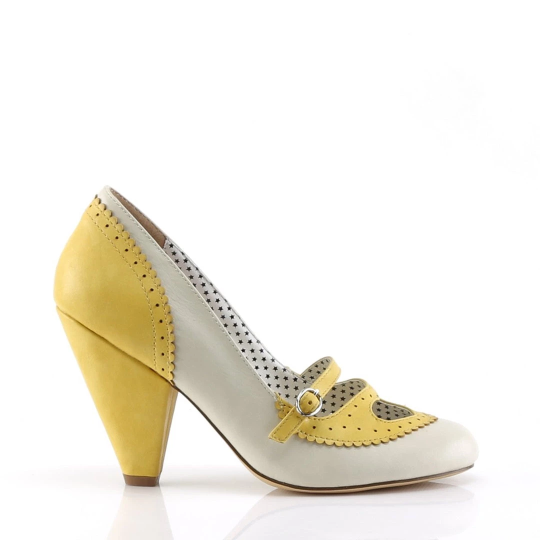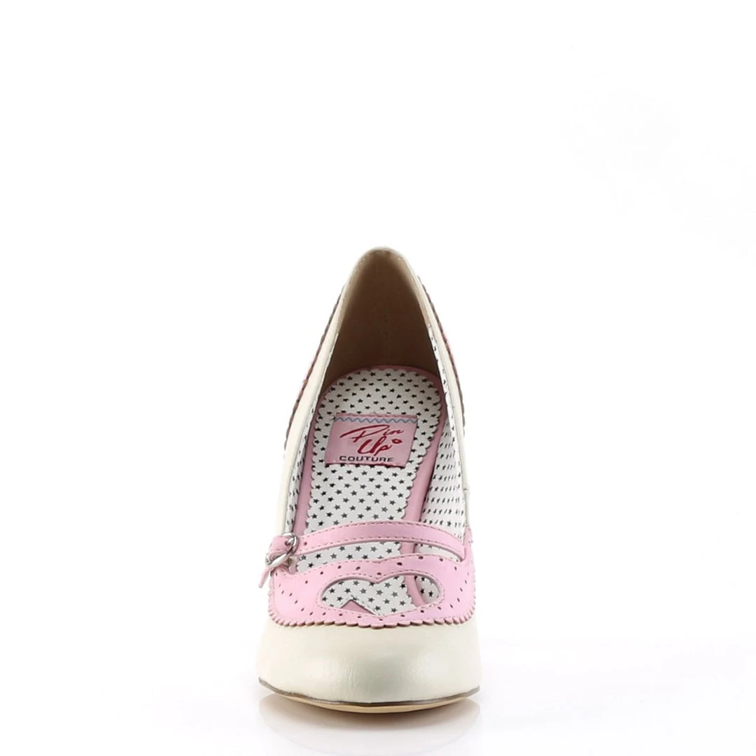 3 3/4″ Cone Heel Mary Jane Spectator Pump W/ Heart Cutout Detail.