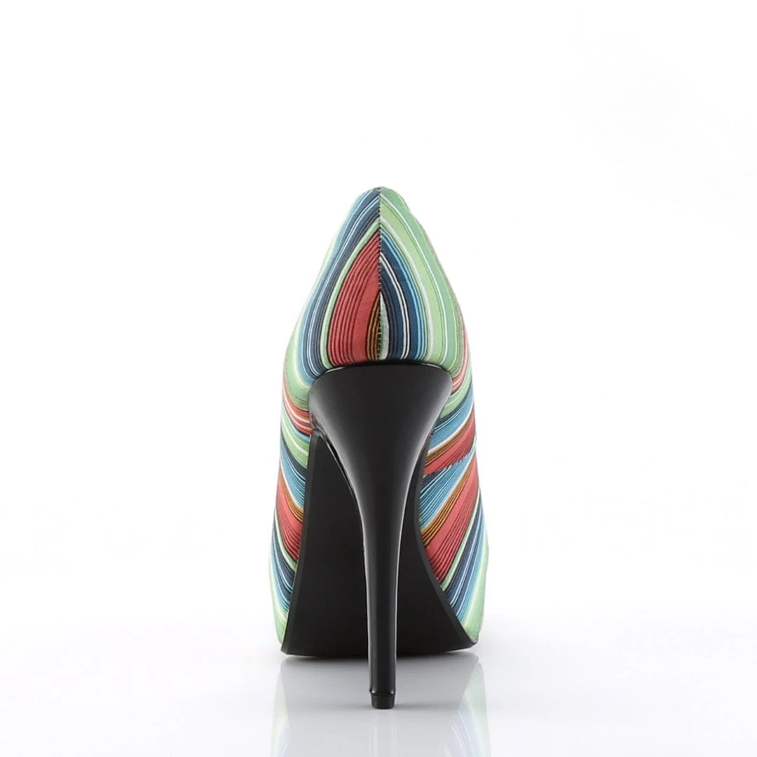These summery multi-coloured print design heels look absolutely fabulous on. Such an eye catcher and they just look gorgeous. Bright and colorful heels with a fabulous design that will keep you looking good all season!