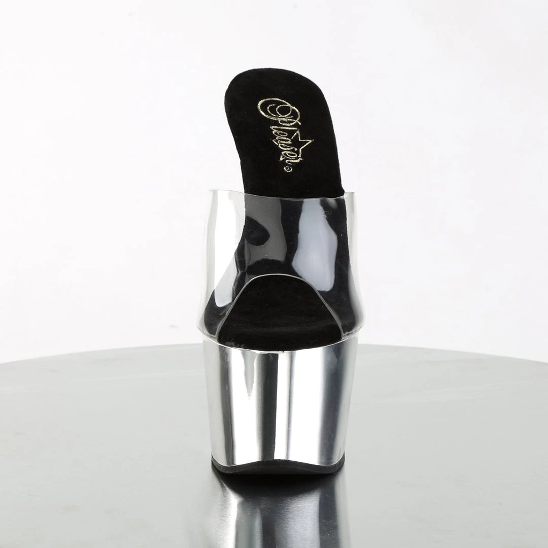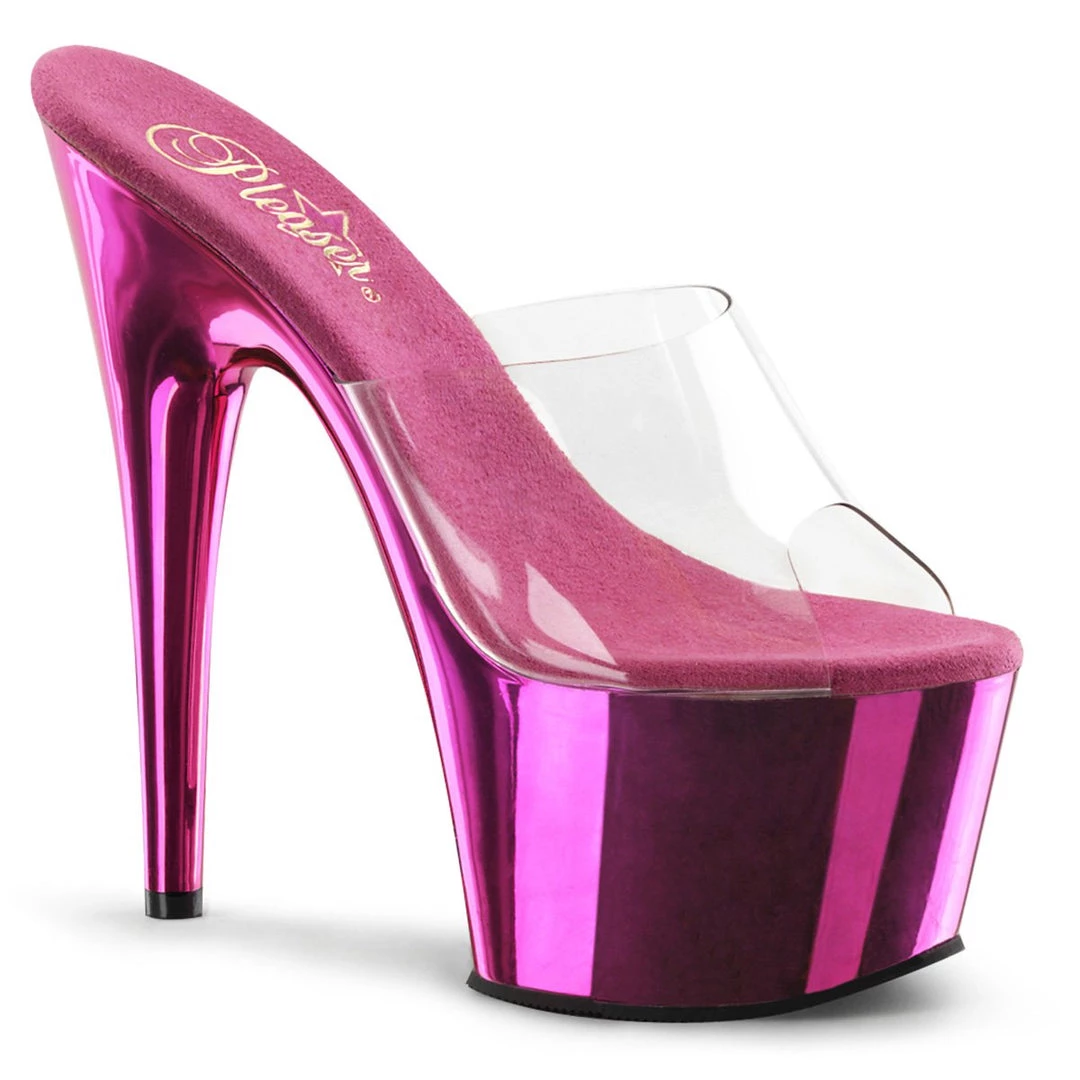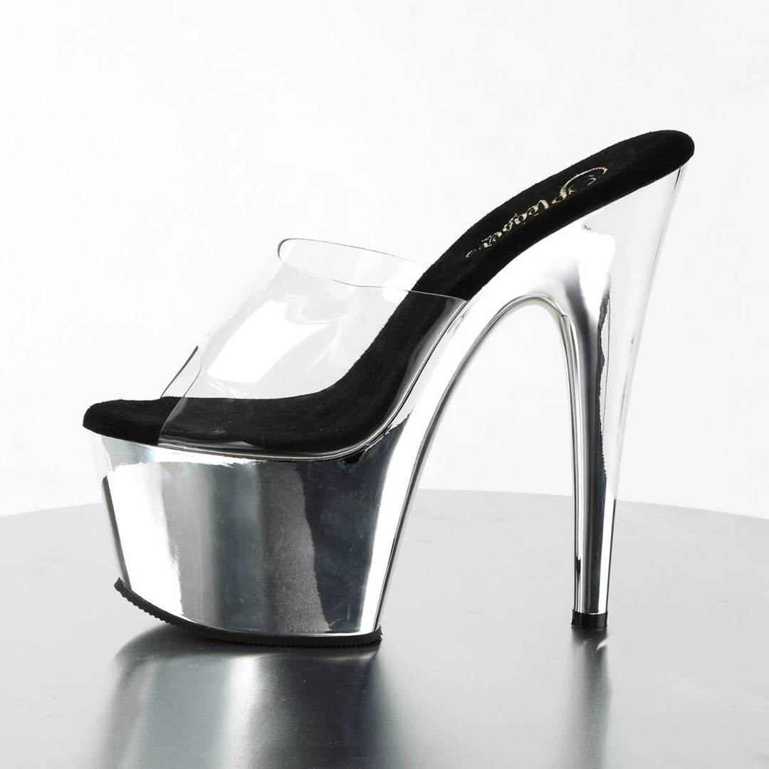 Gorgeous 7″ (17.8cm) heel, 2 3/4″ (7cm) platform slide with chrome plated bottom.