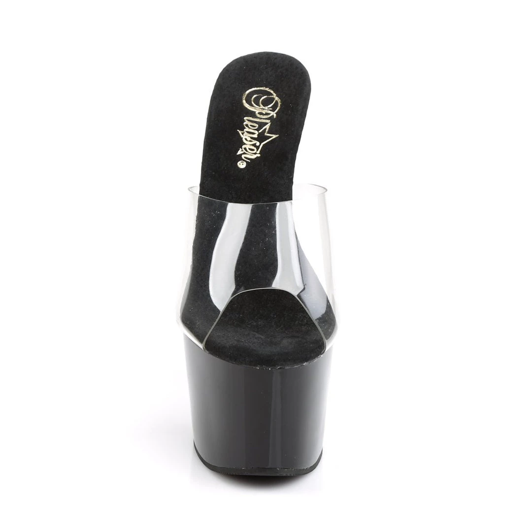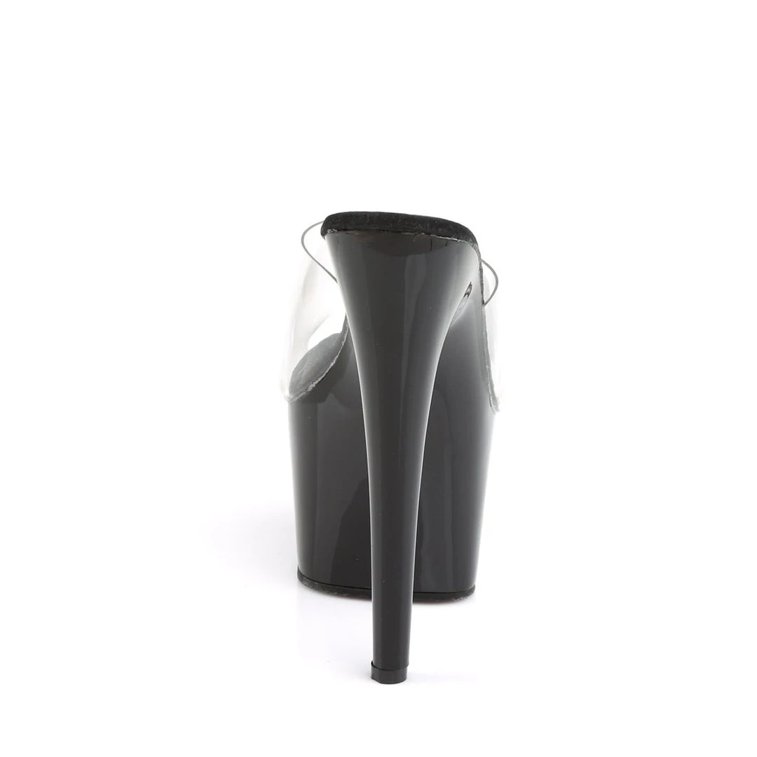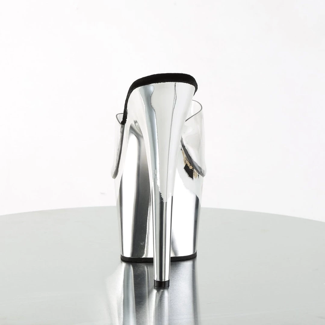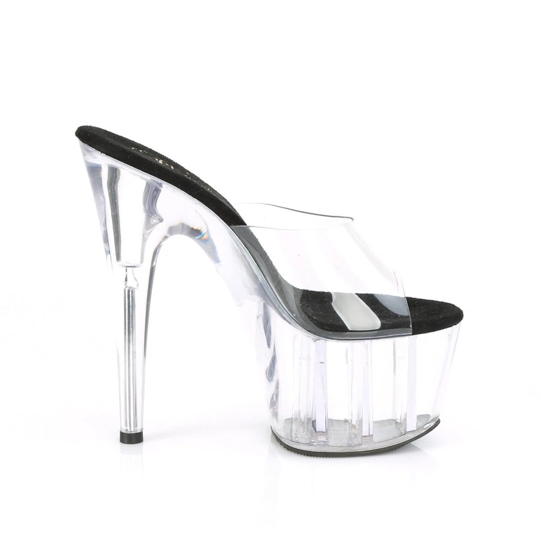Gorgeous 7″ (17.8cm) heel, 2 3/4″ (7cm) platform slide with chrome plated bottom.