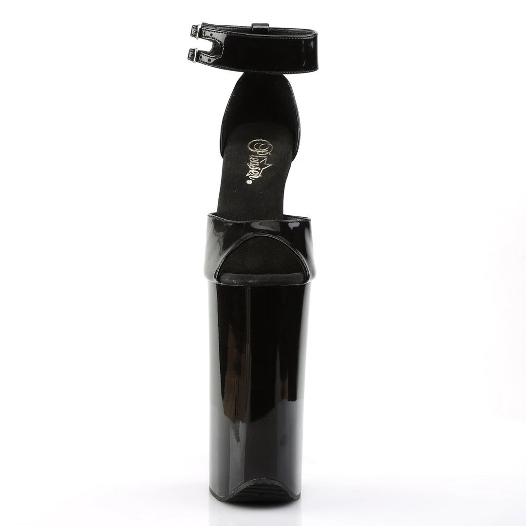 Sexy and exotic wrap around ankle strap sandals with interesting strap pattern on top and matching wrap-around ankle strap with adjustable length and metallic buckle closure on the exterior side for a perfect fit. The sole features ultra high 10 inch (25 cm) high stiletto heels which lengthen the legs and a front 6.25 inch high platform which balances the heels and adds extra stability for an effortless wear.