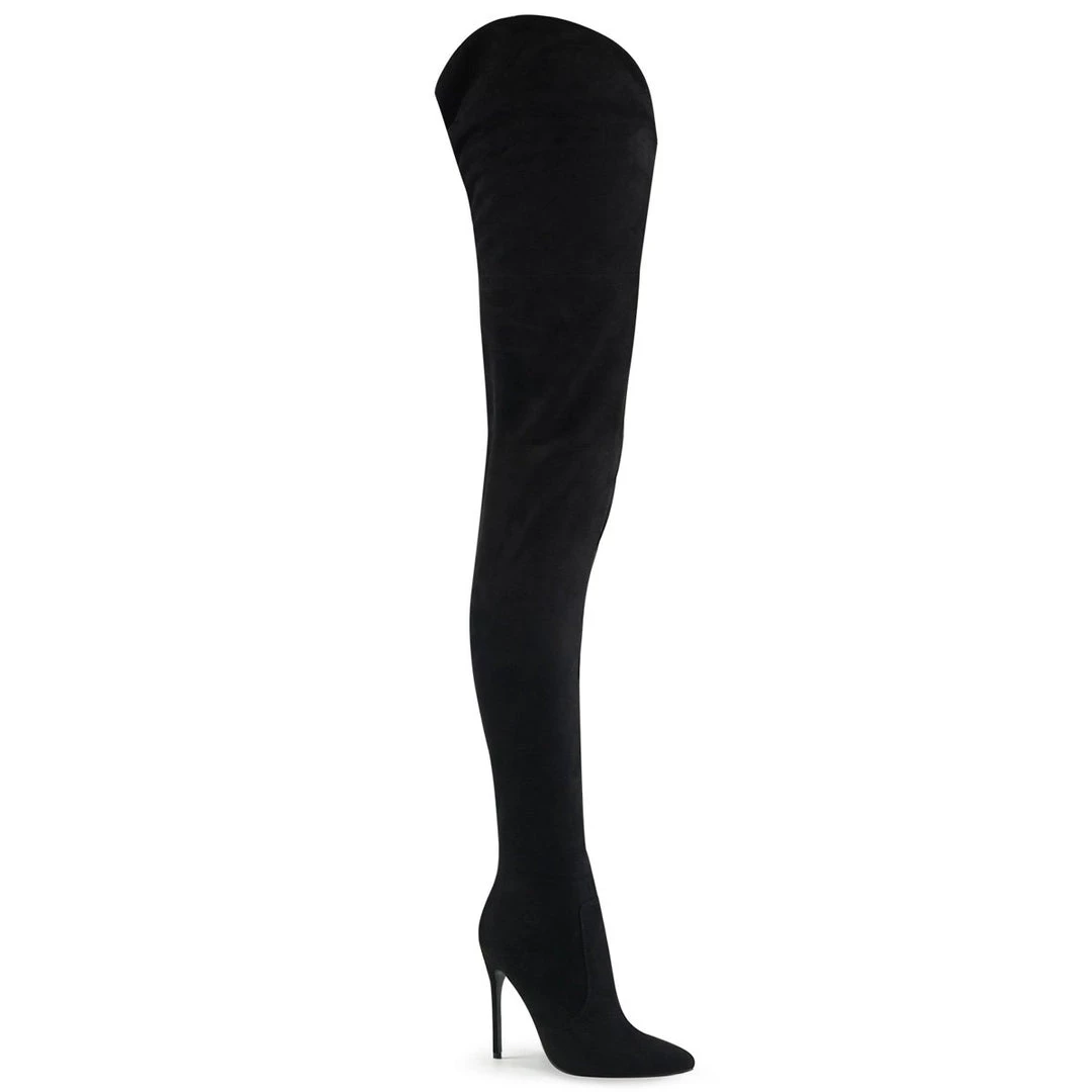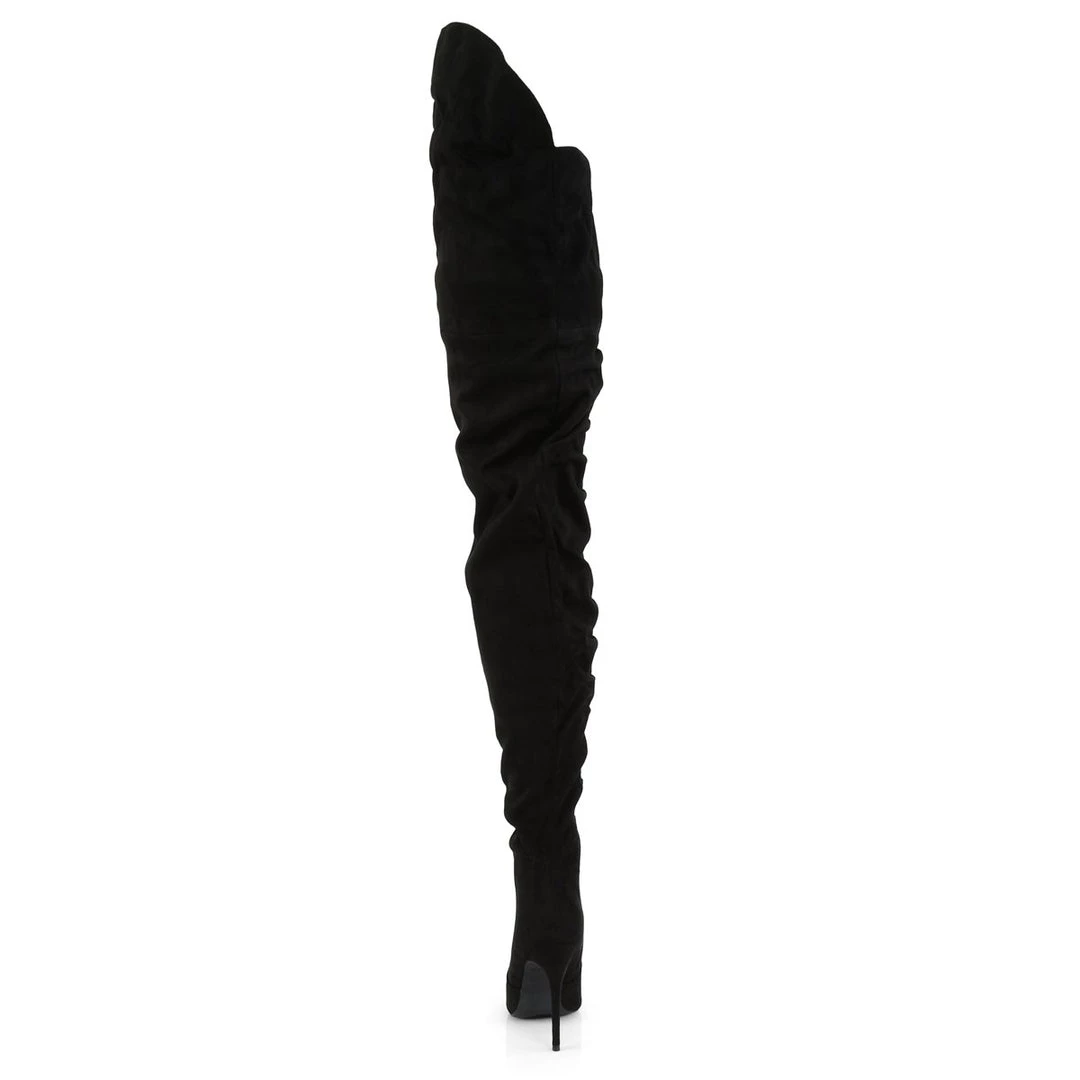 Sleek & sexy 5″ (116mm) heel crotch boot featuring gathered inner shaft & asymetrical raised outer shaft, 6/7 inside zip closure.