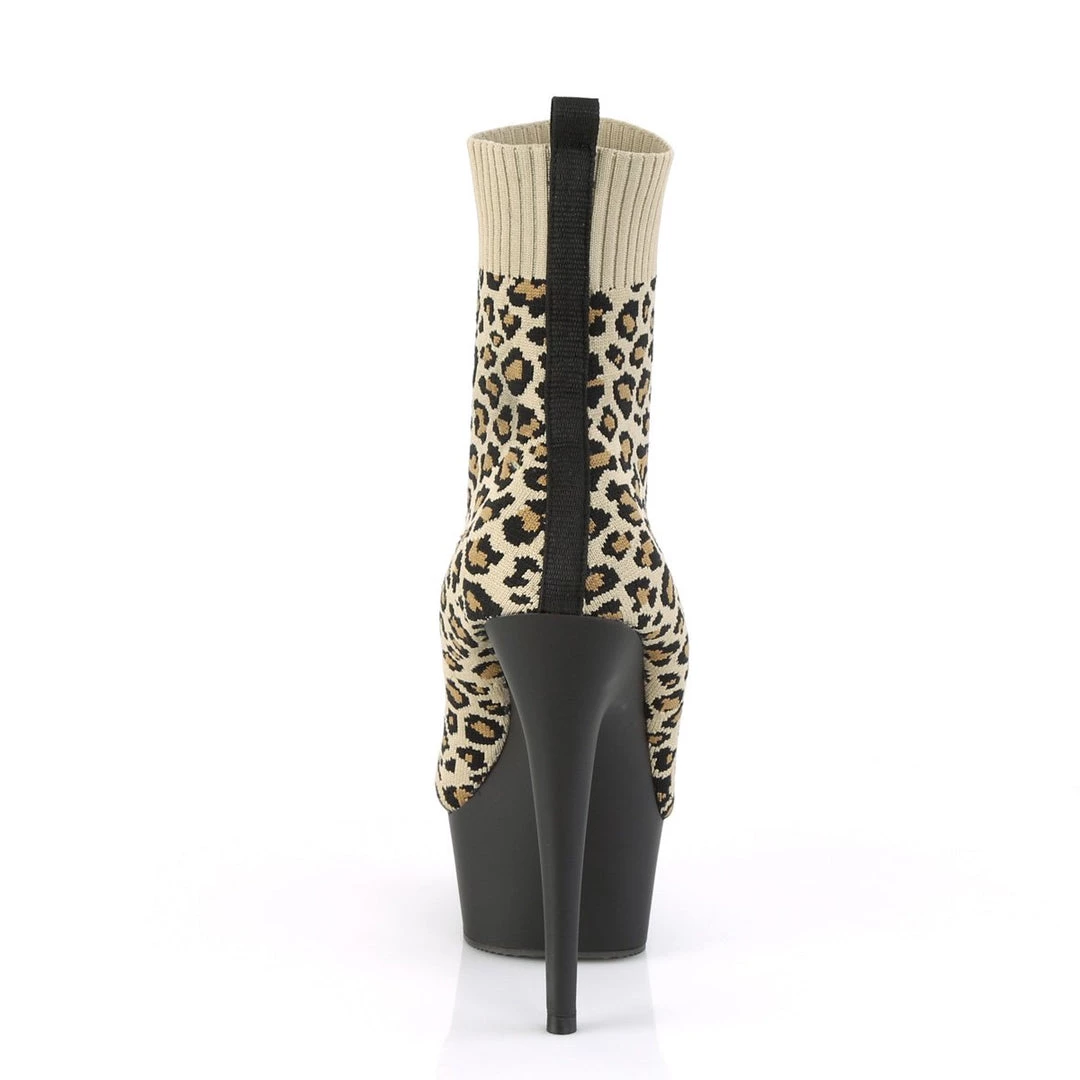Take a walk on the wild side with these sexy 6″ (152mm) heel, 1 3/4″ (45mm) platform pull-on stretch rib-knit leopard print booties.