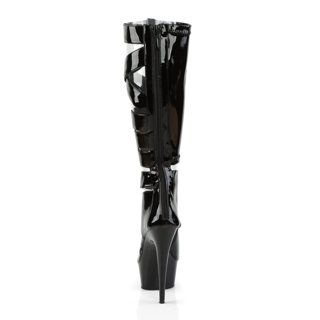 This Knee High Gladiator Sandal Boot features 6″(15.25cm) Heel, 1 3/4″(4.5cm) PF, Full-Length Back Zip Closure.
