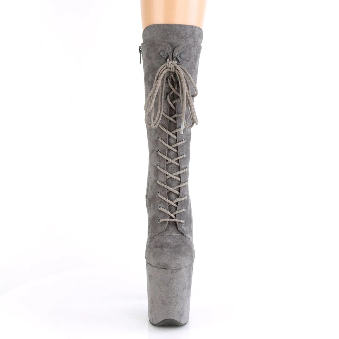 Stunning 8″ (200mm) heel, 4″ (100mm) platform lace-up front mid calf boot featuring a fully wrapped platform bottom and full inside zip closure. Includes matching & black shoe laces.