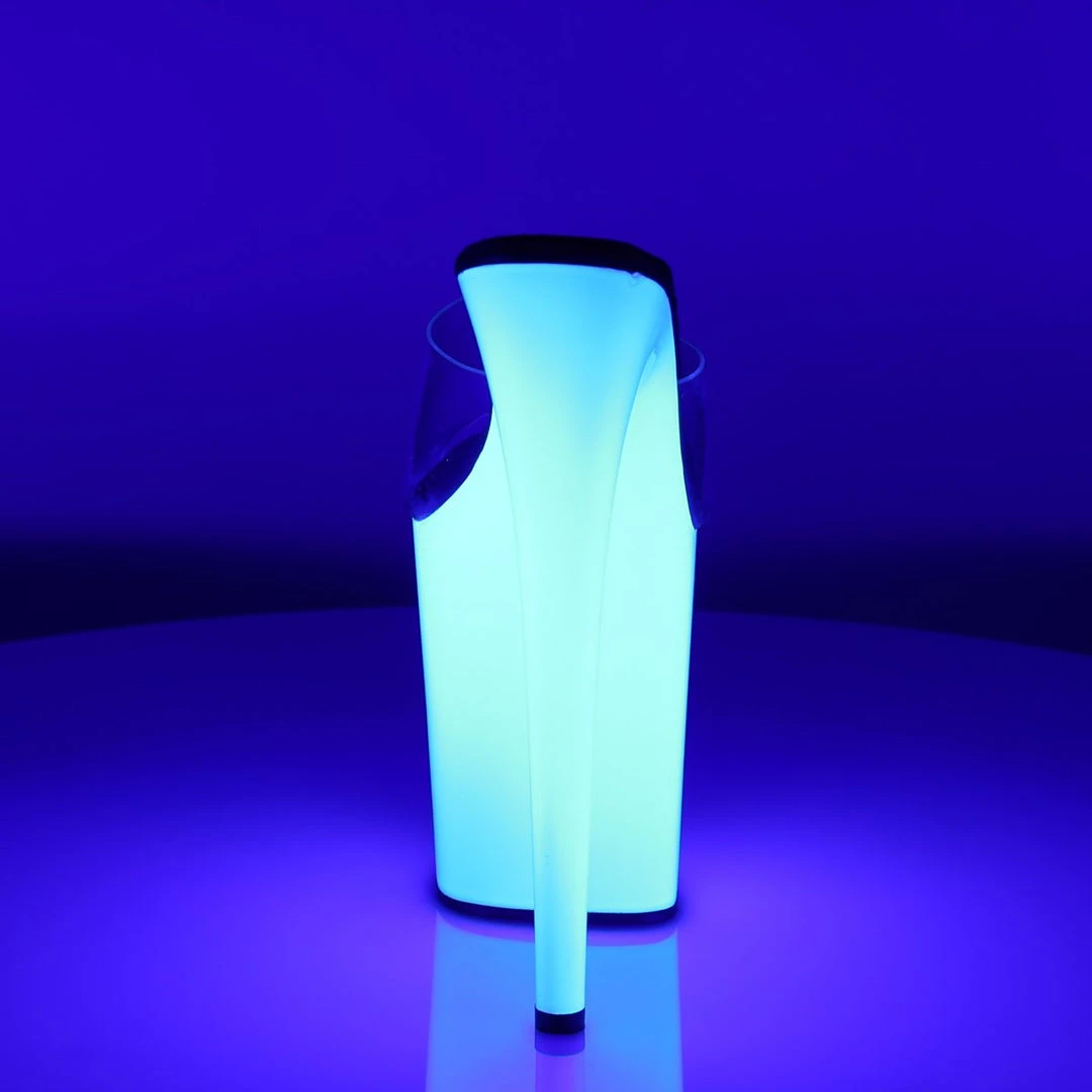Make your fashion with the slide of 8″(20.25cm) Heel, 4″(10.25cm) Platform Slide Featuring Entire Bottom Neon UV Reactive for a provocative look. The soft matching color cushioning contributes, alongside the 4″(10.25cm) front platform, to creating a comfortable feel for the feet, while the matching color 8″(20.25cm) high heels add that provocative touch for a sexy look without any sacrifice.