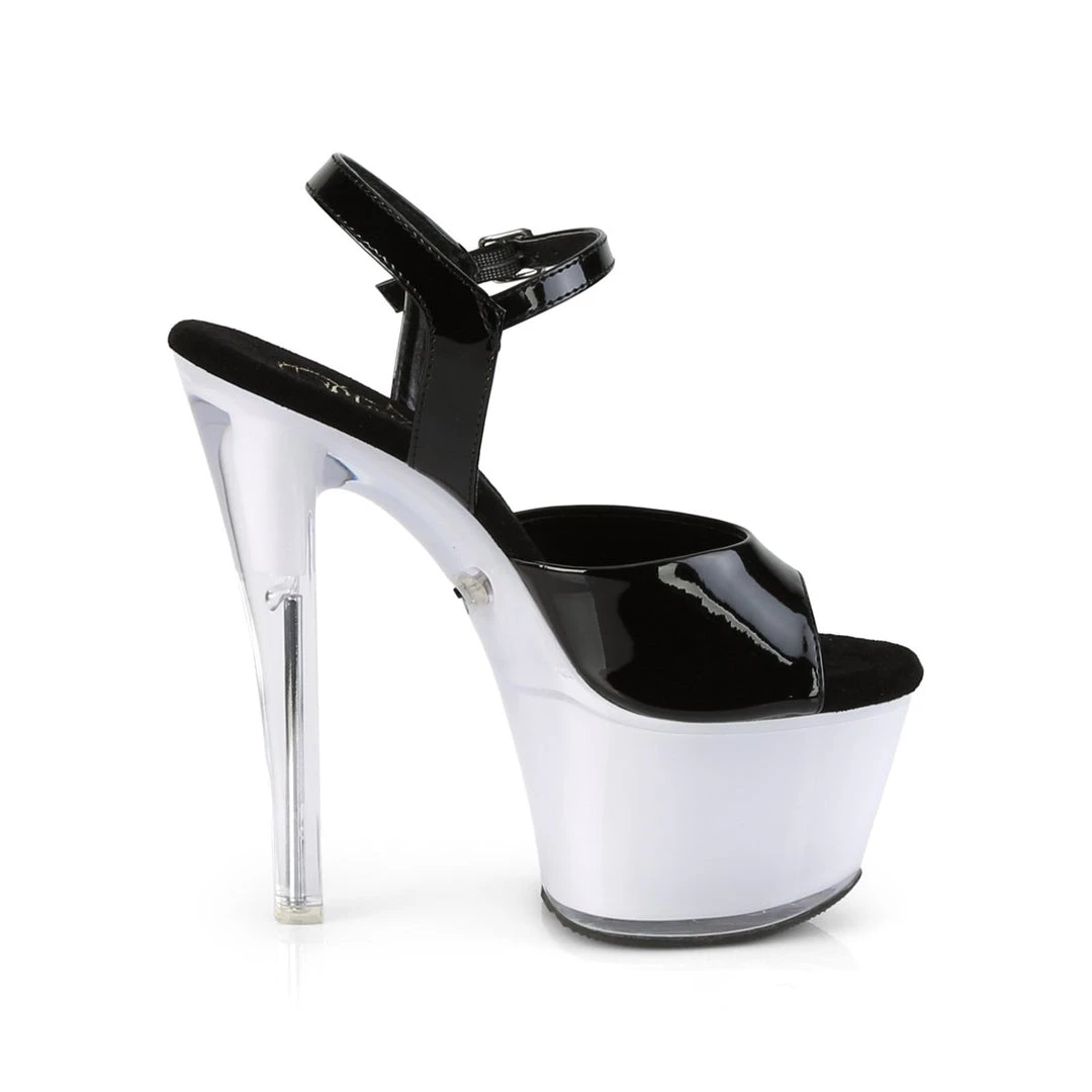 7″ (178mm) Heel, 2 3/4″ (70mm) Platform USB Chargeable LED Light-Up Ankle Strap Sandal w/ Multiple Static/ Changing Color Options & Lighting Patterns.