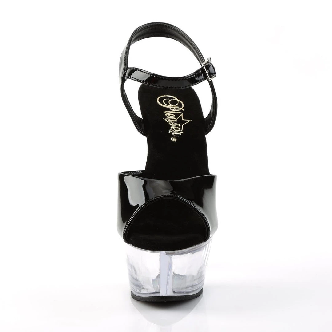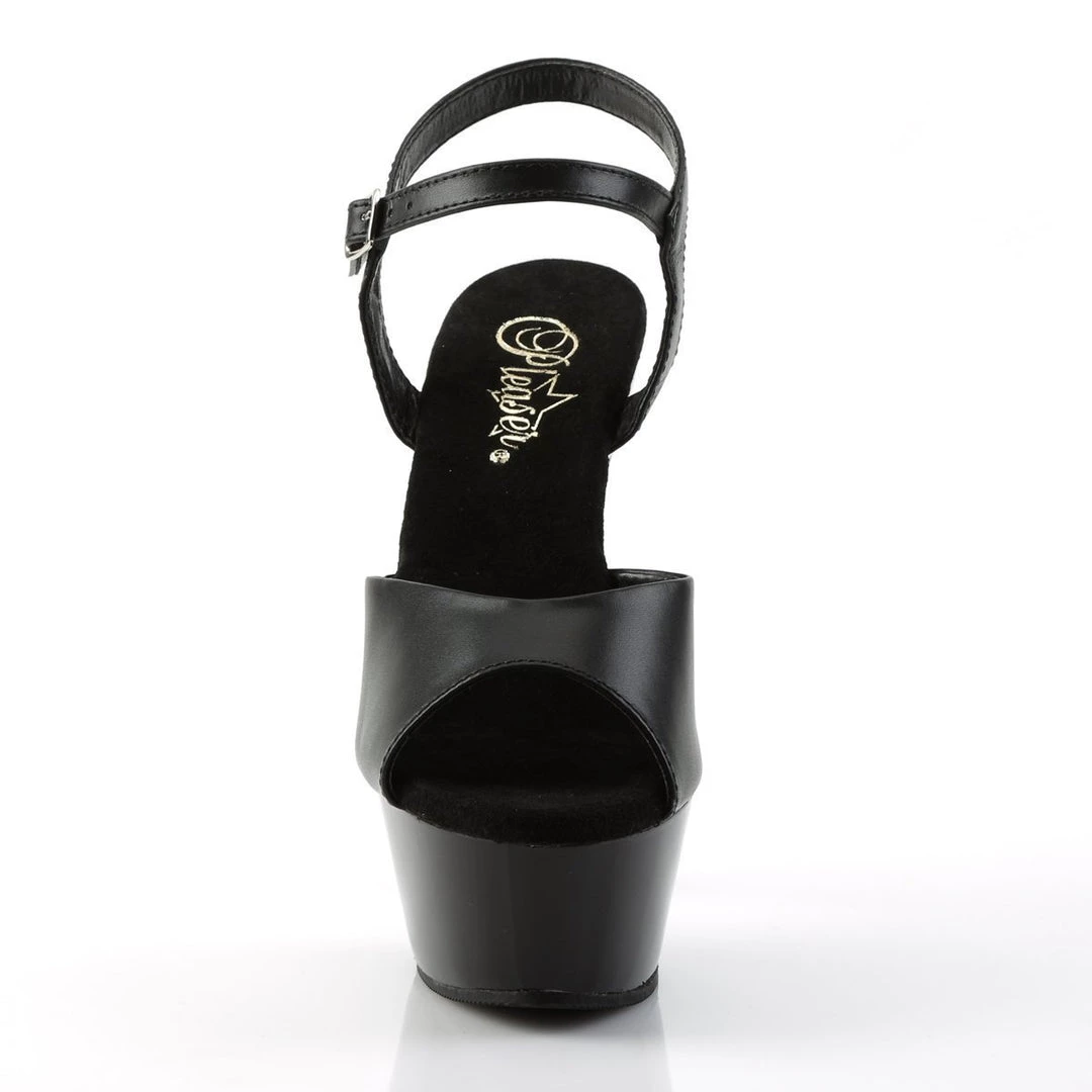 Stylish Platform sandals with peep-toe detail, toe strap with wide base and thin middle and side straps which support a chic ankle strap with discreet side closure with metallic buckle. This classic look is lifted onto a dazzling high 6 inch (15 cm) stiletto heel balanced by a high front platform for added stability.