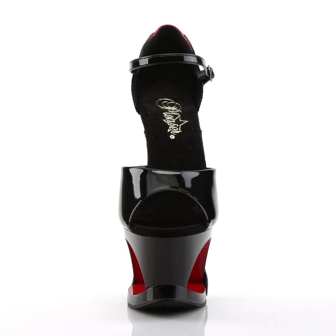 Gorgeous Pleaser 7″(18cm) heel, 2 3/4″(7cm) cut-out platform two tone closed back corset style wrap around ankle strap sandal. You won’t be able to stop looking at your feet! These sandals will definitely have everyone’s attention.