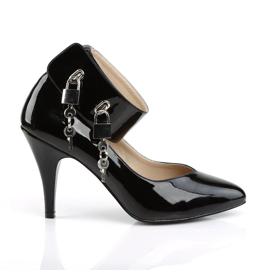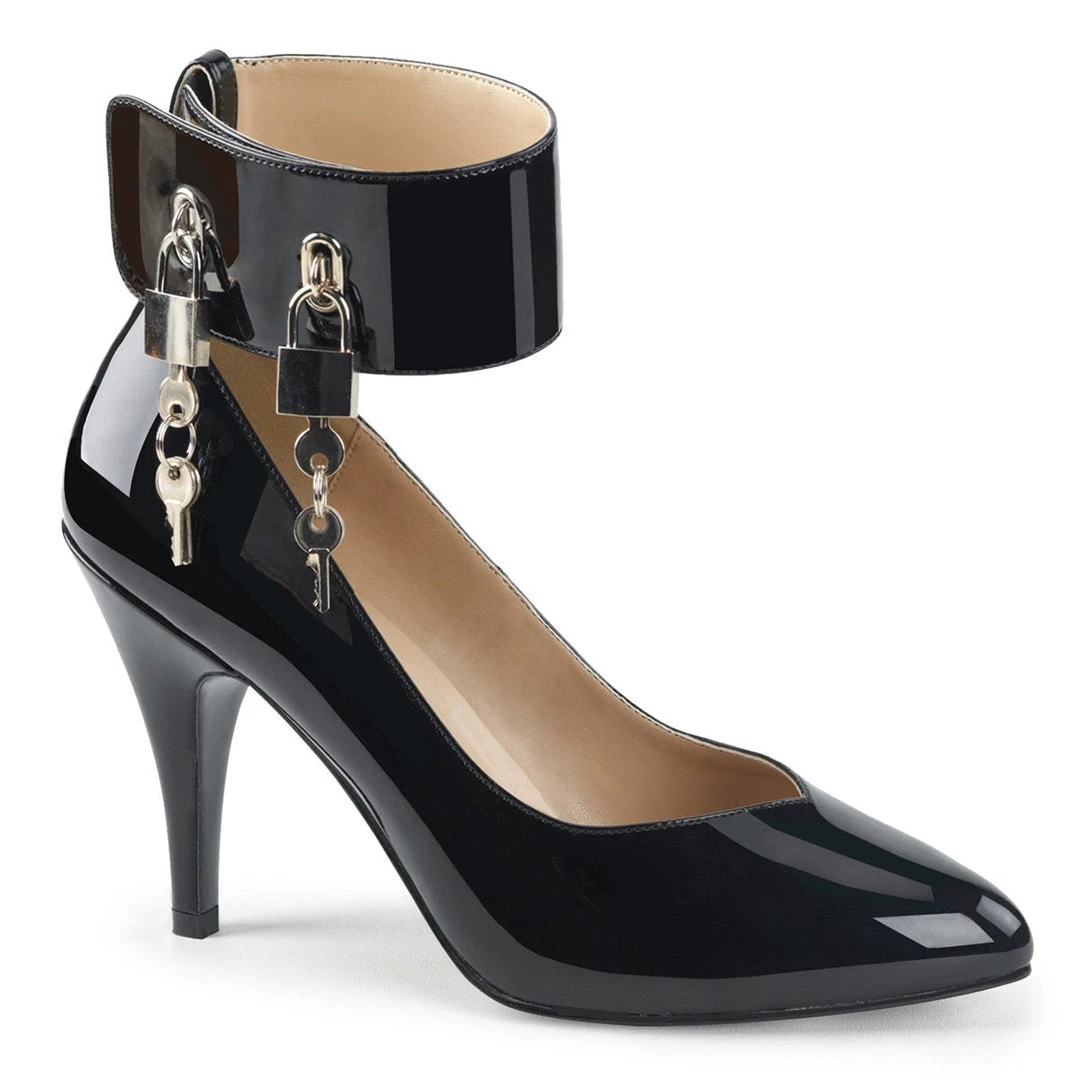 Be bold and sexy in these classic design 4″ (10cm) heel wide band ankle strap pumps.