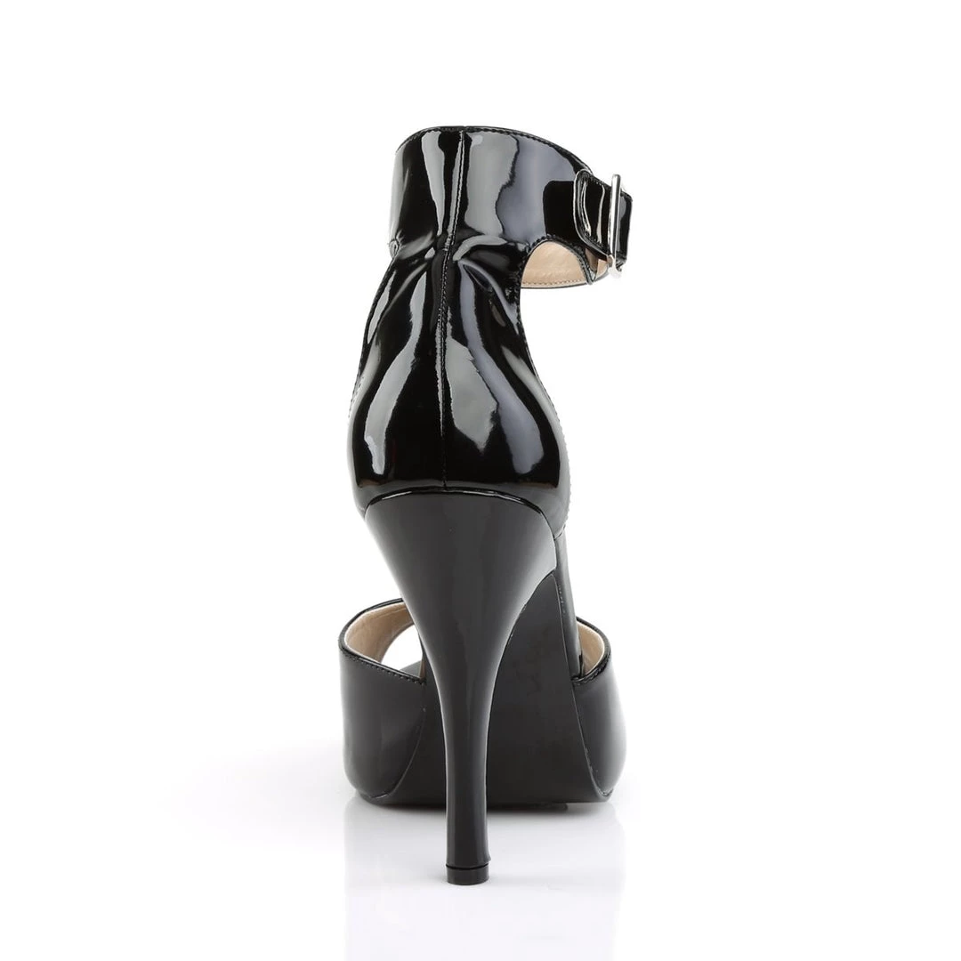 Classic design 5″(12.5cm) heel, with a 1/2″(1.5cm) concealed platform closed back sandal. This shoe features a buckled ankle strap.