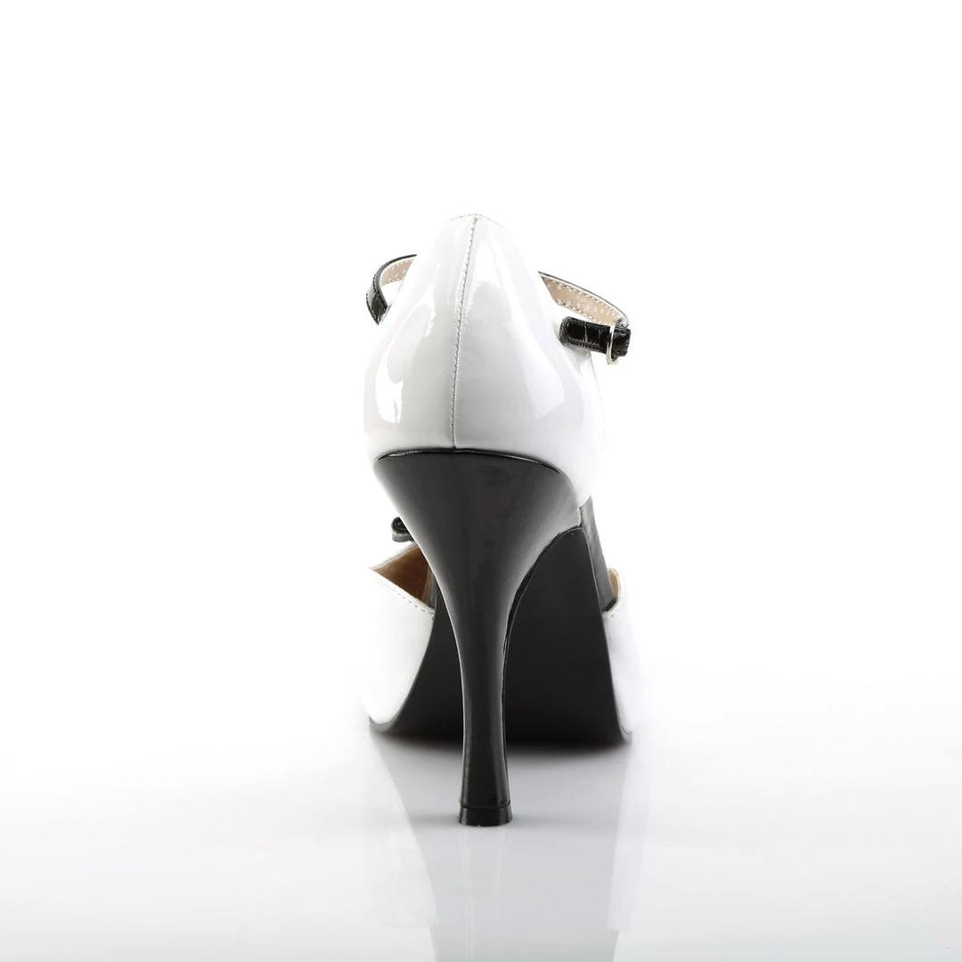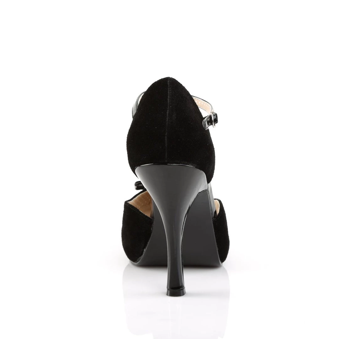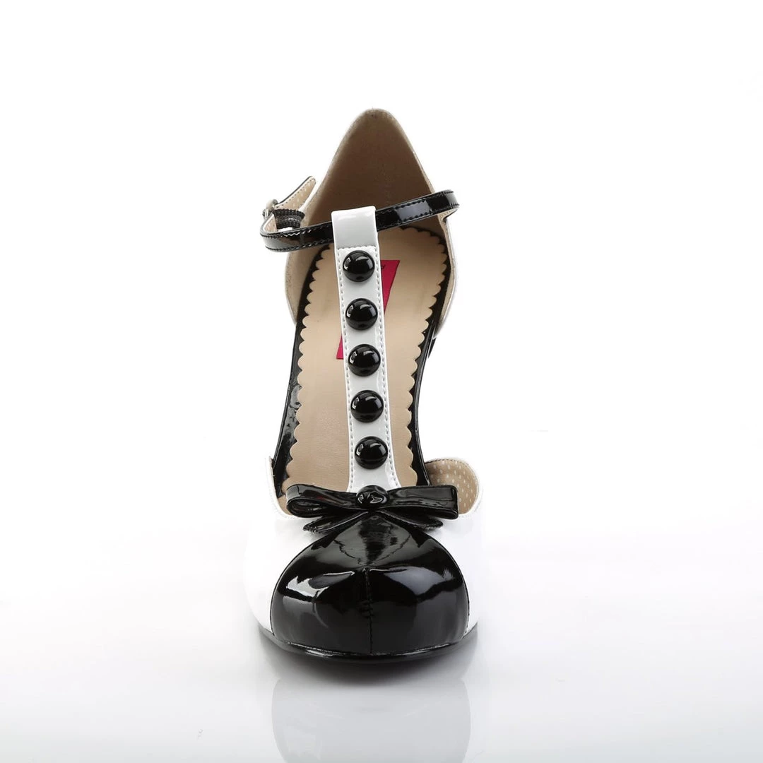 Let your feet do the talking in these eye catchingly stunning 4 1/2″ (11.5cm) heel, 3/4″ (2cm) platform T-strap pump with cute bow detail.