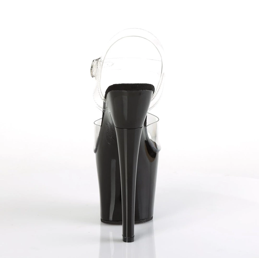 Exquisite 7″ (178mm) heel, 3 1/4 (83mm) platform ankle strap sandal. This shoe is very versatile and will pair well with any look!