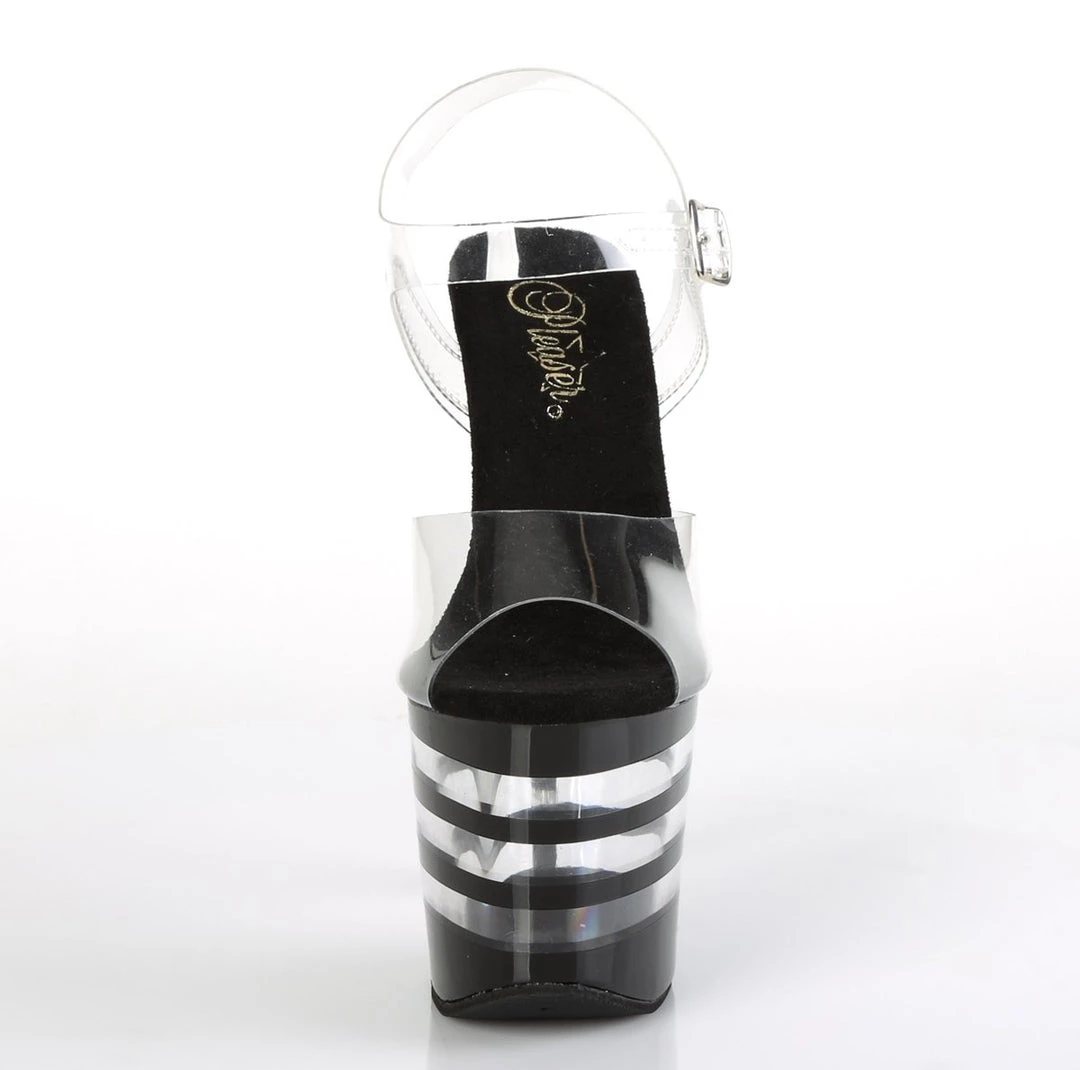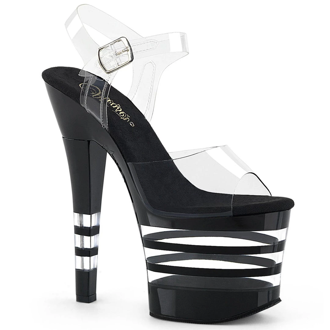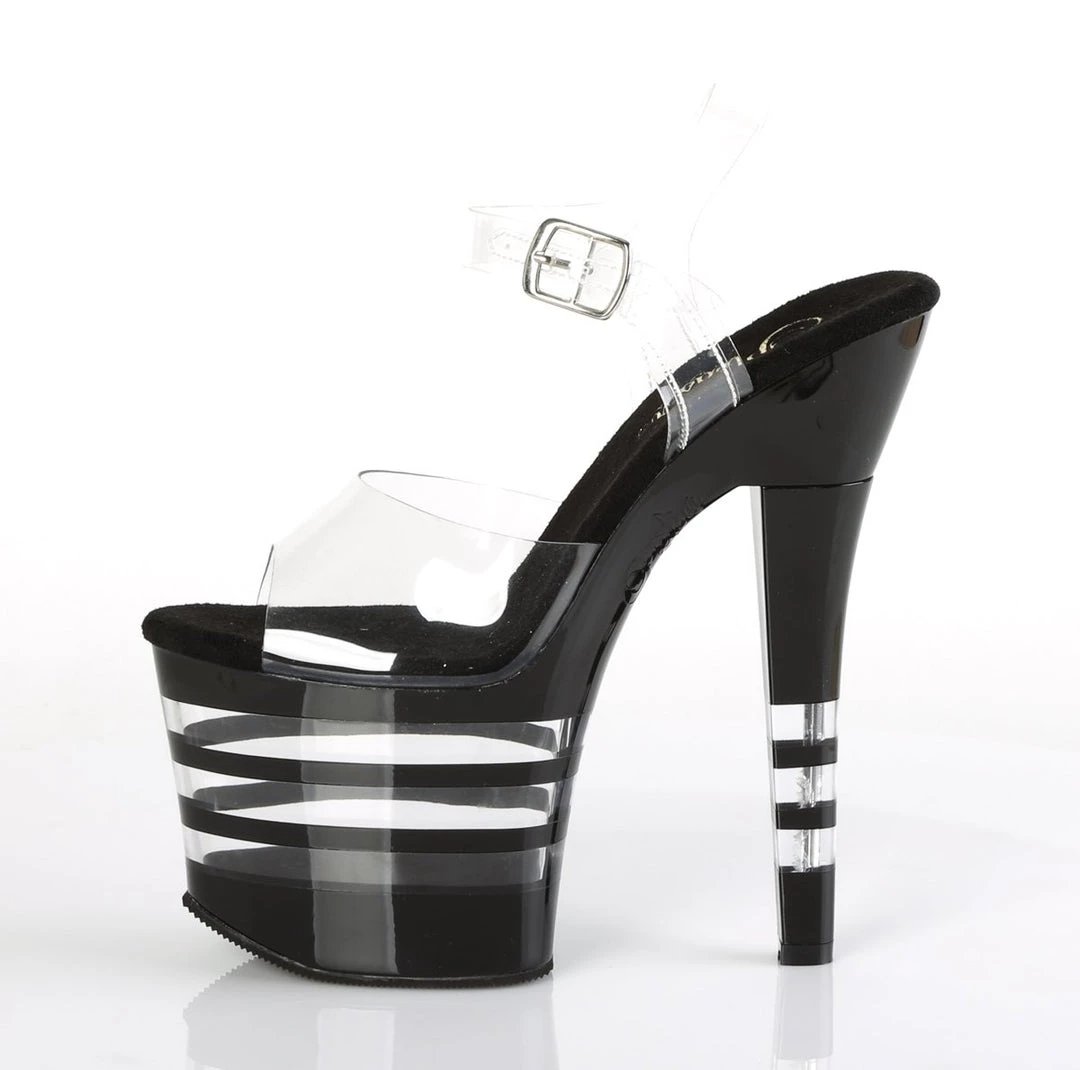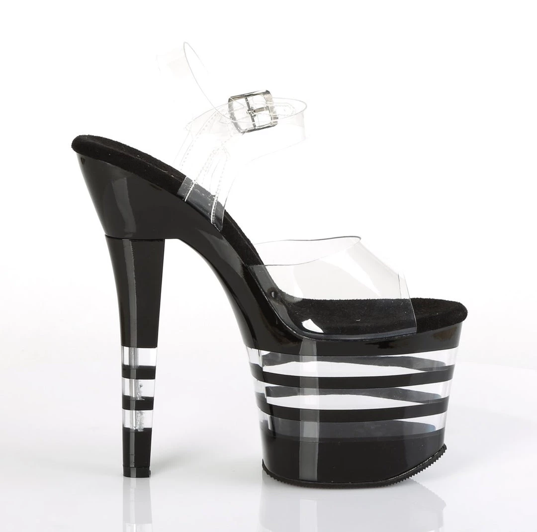 Classic 7″ (178mm) heel, 3 1/4 (83mm) lined platform ankle strap sandal