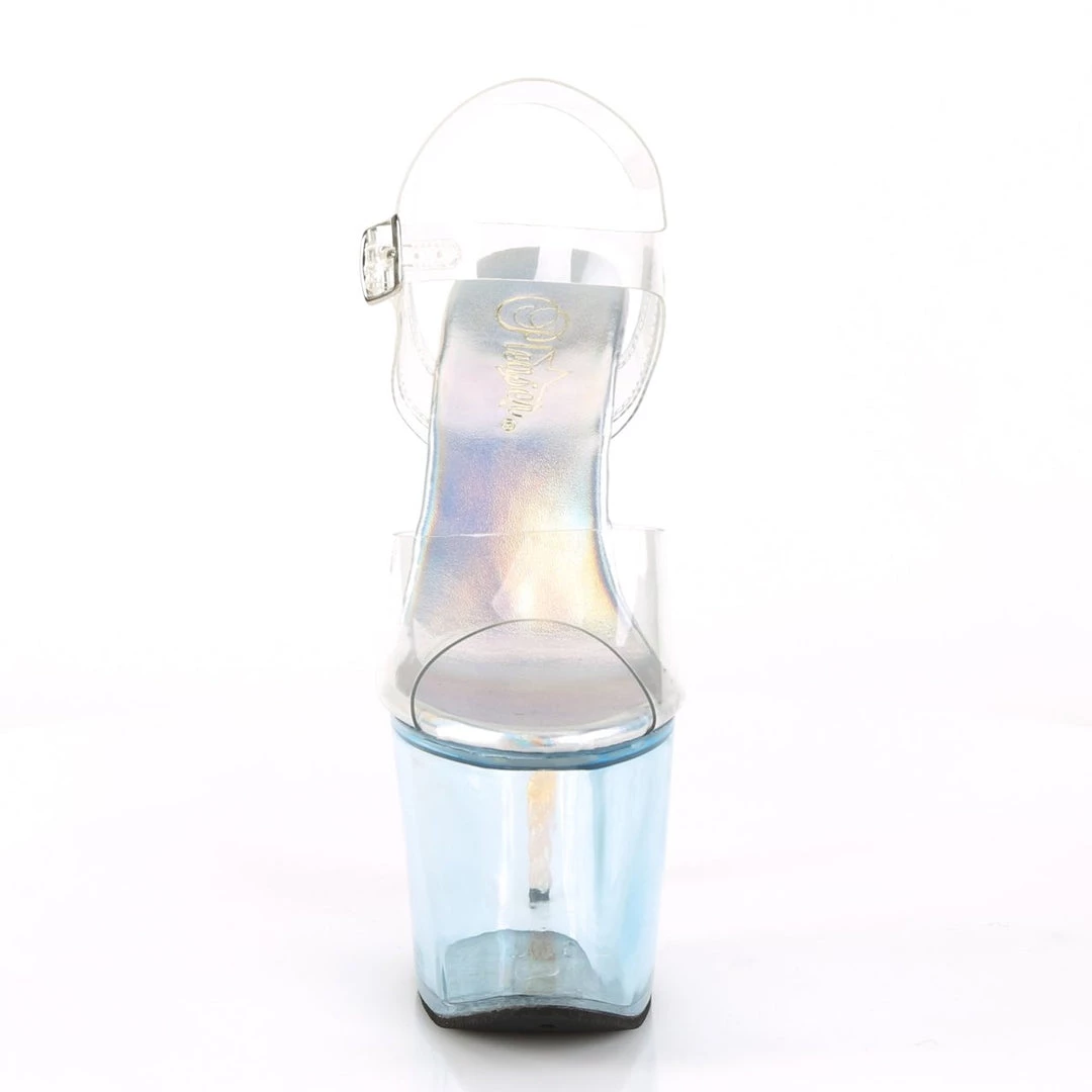 Always be yourself. Unless you can be a unicorn, then always be a unicorn. Channel your inner unicorn in these 7″ (178mm) heel, 3 1/4″ (83mm) platform ankle strap sandal featuring tinted platform bottom and glittered ombre unicorn heel.