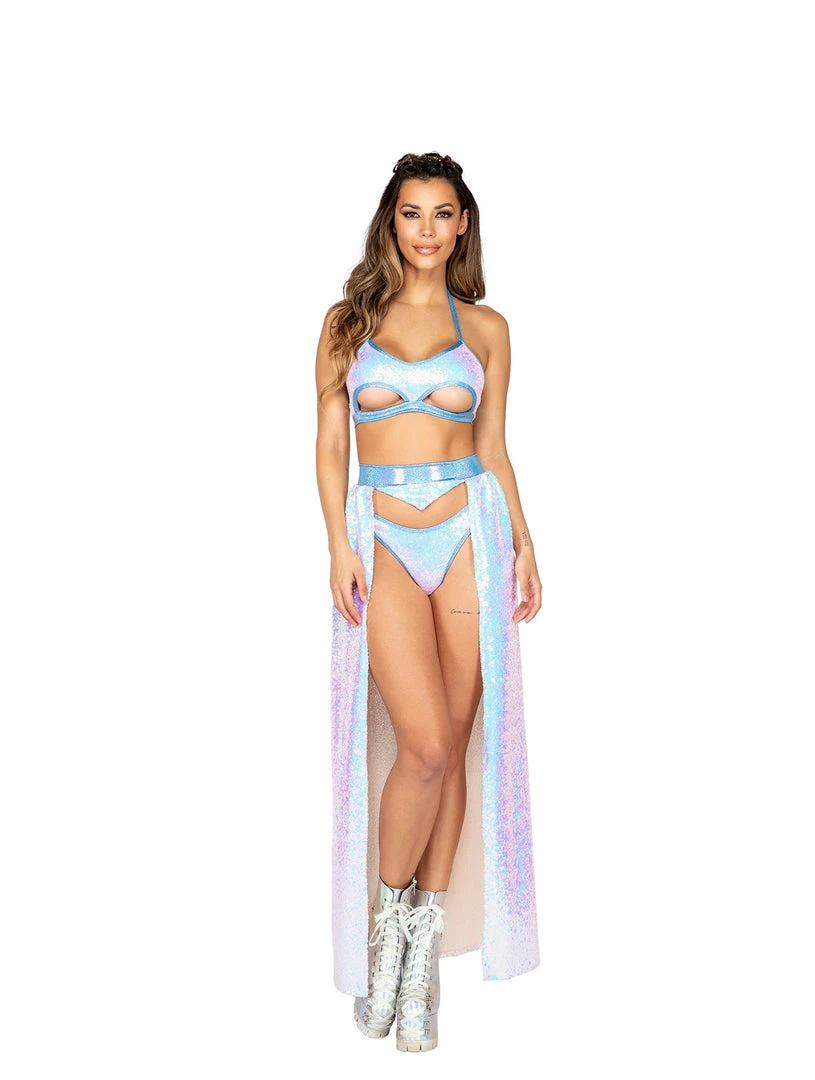 Sequin haltered cutout top.