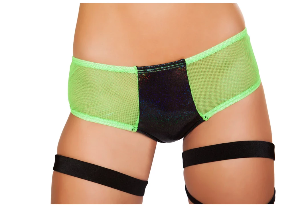 Two-tone shorts with sheer detail. (Shown with T3246,3244; sold separately)