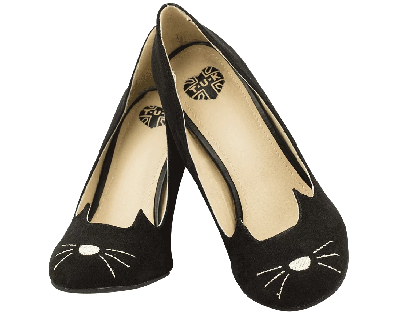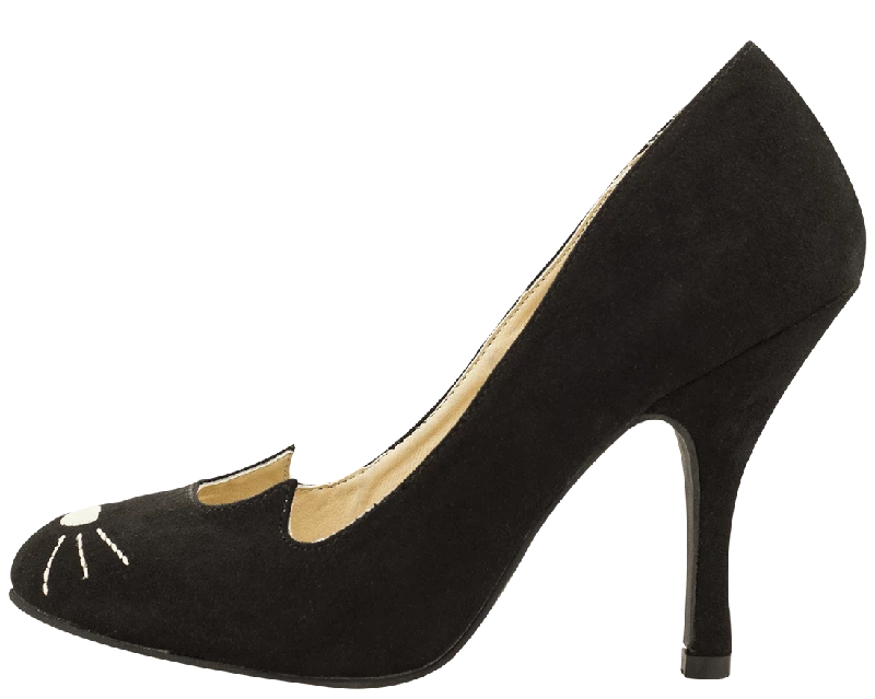 Now there goes a classy kitty. These vegan friendly microfiber vintage heels are made with a subtle kitty face to show off your own personal style. These heels measure 4” tall and are available in Women’s sizes 5-11.