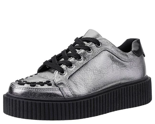 For the rule-breakers, concert-goers, and adventurous shoe lovers, get ready to elevate your shoe game in the Casbah Creepers. A twist on the classic sneaker silhouette injected with signature T.U.K. elements for the perfect dose of street & punk rock style. Features an ultra-cool graphite metallic pigskin leather upper that is sure to be a conversation starter. Sits on top of the traditional TUK creeper sole that is about 1 ½” at the heel and 1” in the front. Has removable gel insoles for added comfort.