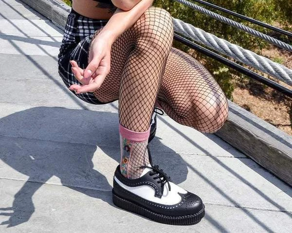 These classic wingtip creepers have a retro style with a modern twist. The timeless creeper that you know and love is back featuring a new sleeker sole that is more lightweight and flexible than ever. Features a low platform height that is approximately 1 ¼” at the heel and ¾” in the front and is made of a mixture of EVA and rubber that contributes to the sole’s bendability. Has an all-black upper made of our high quality TUKskin™ material — polishable synthetic faux leather that is both soft and breathable. Comes with removable memory foam insoles for added comfort.