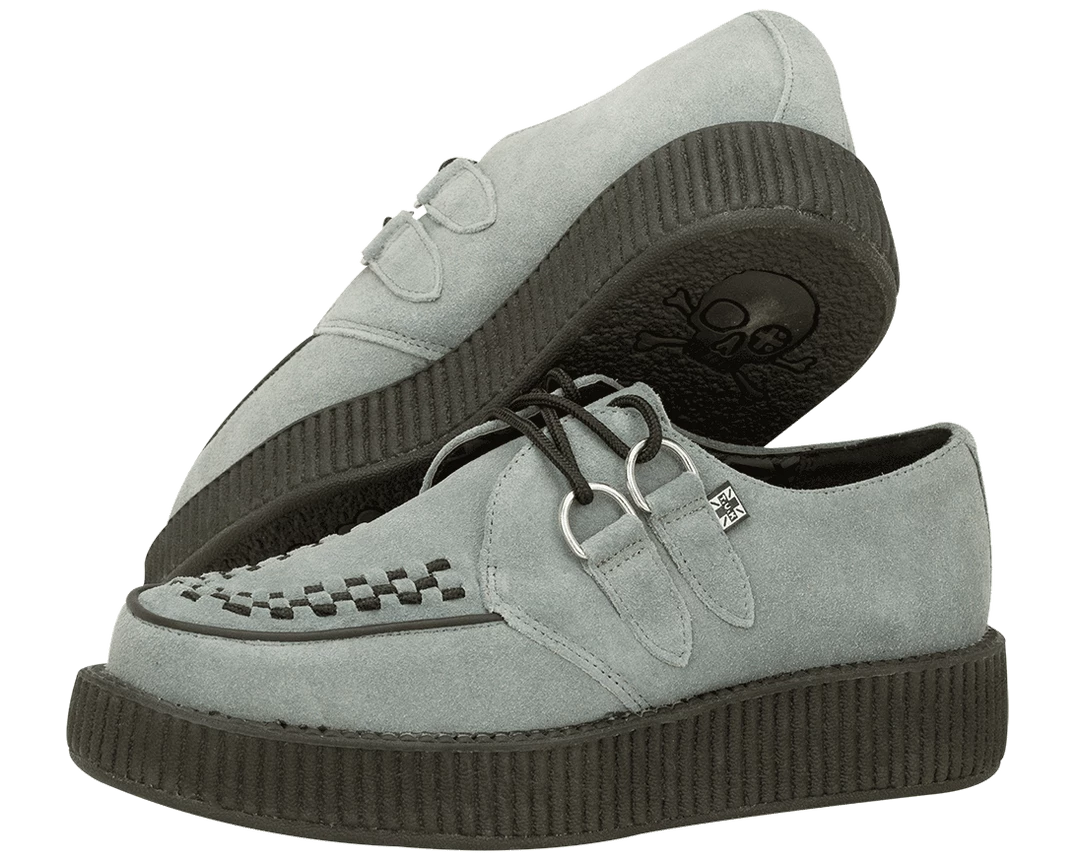 New and improved these creepers are the traditional popular grey suede on our new lightweight Viva soles. These shoes have a heel height of 1.5″ and a toe height of 1″.