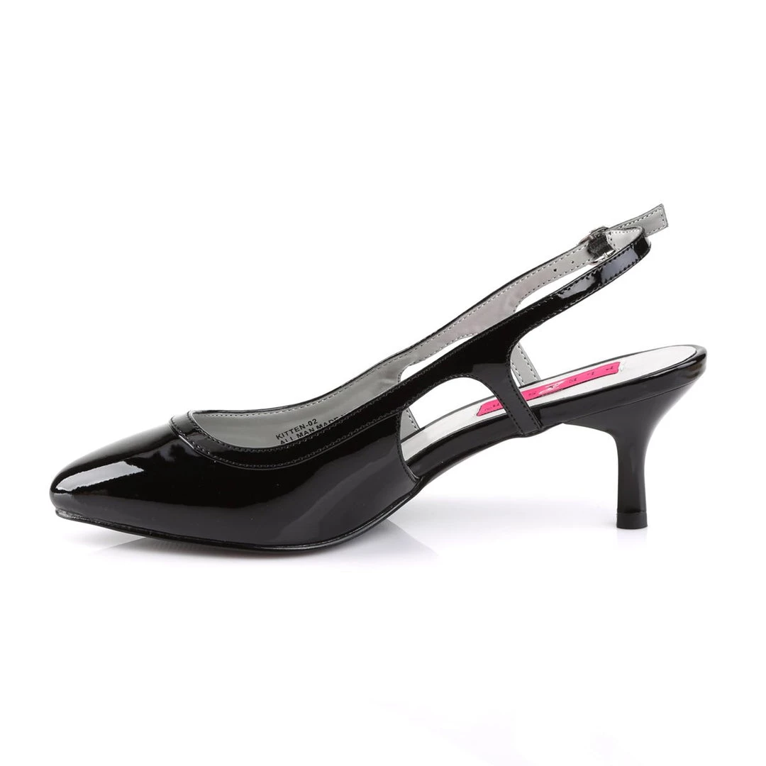 Sexy and fun 2 1/2″ (6.3cm) heel slingback pump. These heels are comfortable and easy to wear, and look great too! Perfect for any day of the week!