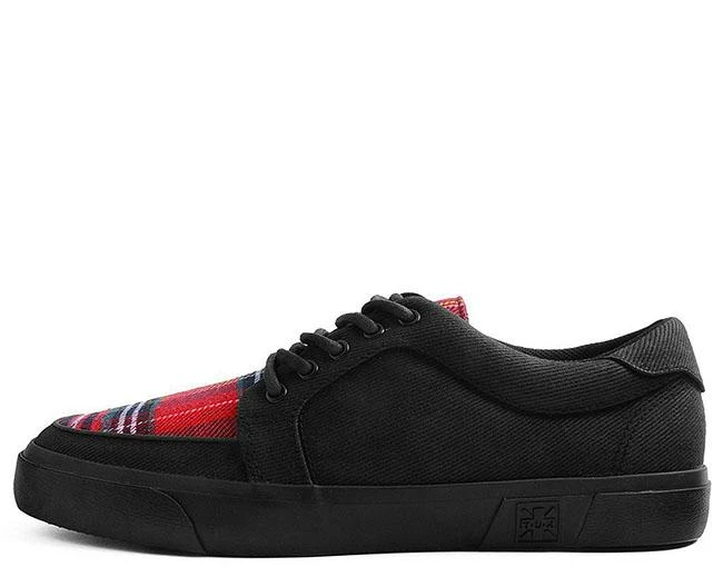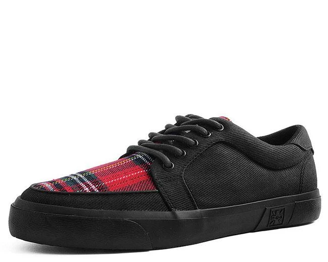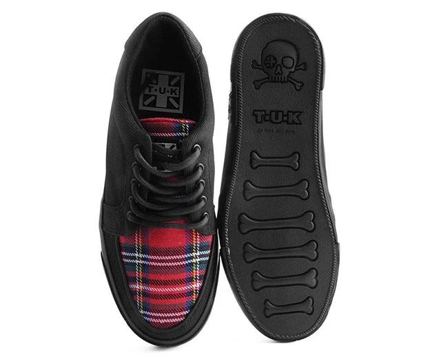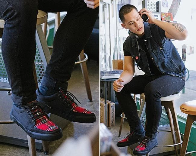 Mad for plaid? Us too. Indulge your inner grunge kid with this shoe featuring a vegan friendly black canvas and tartan plaid upper on our vulcanized VLK creeper sneaker silhouette that lends everyday wearability. Interlace closure and has a lightly padded tongue along with removable memory foam insoles for added comfort.
